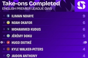 英超第5轮过人榜: