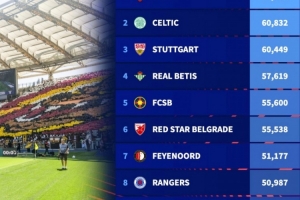 体育资讯9月24日讯 德转盘点了本赛季欧联杯参赛球队主场最大可上座人数榜单,其中罗马主场居首,具体榜单如下: