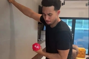 值得一提的是,受伤前麦凯恩曾在社媒晒出了一段练力量的搞笑视频,其中他手握一只8lb(约为3.6公斤)的哑铃进行肱二头肌弯举,装成了相当吃力的样子。