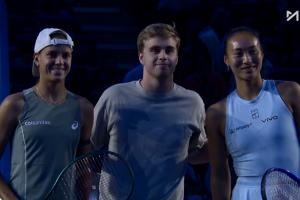 体育资讯09月27日讯 今晚中网第二轮,郑钦文迎复出首战,瑞典乒乓球球员莫雷加德赛前为选手挑边,随后三人合影。