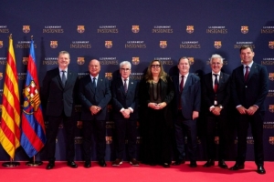 机构副主席埃莱娜-福特、社交领域副主席安东尼奥-埃斯库德罗、橄榄球主管何塞普-玛丽亚-阿尔伯特、社交领域主管何塞普-伊格纳西-马西亚、女子足球主管哈维尔-普吉、手球主管董事琼-索莱以及青少年足球主管董事琼-索勒,共同在巴塞罗那篮球馆举办的隆重仪式上完成了奖章颁发。在诺坎普球馆举行的这场仪式上,巴萨吉祥物到场助兴,两位主持人以及大屏幕上的不同视频播放也为活动增添了氛围。