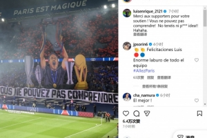 在社交媒体上,恩里克感谢了球迷们的支持,他写道:感谢这个TIFO,这样的场面令人难以忘怀。