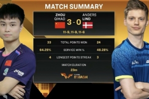 体育资讯9月30日讯 WTT中国大满贯男单1/16决赛,国乒选手周启豪3-0战胜林德,晋级16强!