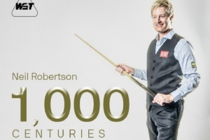 斯诺克国锦赛资格赛,罗伯逊对阵迪克梅,他在本场比赛中轰出职业生涯第1000杆破百,也成为继奥沙利文、特鲁姆普、希金斯后第四位达成该里程碑的球员。