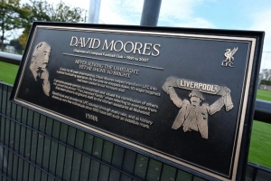 体育资讯10月3日讯 利物浦官网消息,俱乐部前主席大卫-摩尔斯纪念牌在柯比学院揭幕。