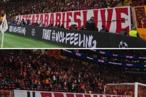 体育资讯10月3日讯 《巴黎人报》报道,在加拉塔萨雷1-0战胜利物浦的欧冠比赛中,加拉塔萨雷球迷拉出许多横幅,声援巴勒斯坦民众。