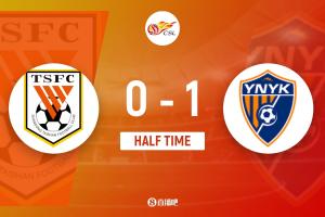 上半场比赛结束,山东泰山0-1云南玉昆。
