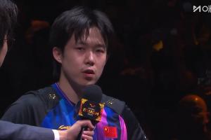 王楚钦:我觉得整个的过程还是非常的艰难以及艰苦,其实每一天都很折磨,感觉他确实就像一个马拉松一样,每天不断消耗你的精力,体力,包括对于比赛的渴望以及种种吧,但是我觉得在这些艰难的过程当中,自己其实心里边还是有自己的一份责任感和使命感,一直在支撑着自己来到了最后。