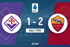 伤停补时2分钟。上半场比赛结束,佛罗伦萨1-1罗马。