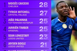 1.凯塞多(切尔西):28