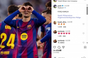 本场比赛佩德里打进精彩进球,赛后他也在社媒晒出庆祝进球照片,配文写道:“直到最后,加油巴萨!”