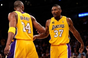 2010年6月17日,湖人和凯尔特人在总决赛中迎来生死战。比赛到第四节双方杀得难解难分,还剩1分钟时科比传球给阿泰斯特,后者投进了锁定胜局的三分,帮助球队最终捧起总冠军奖杯。是役,科比拿下23分,阿泰斯特贡献全队第二高的20分。绿军虽然首发五虎全部得分上双,但还是遗憾落败。