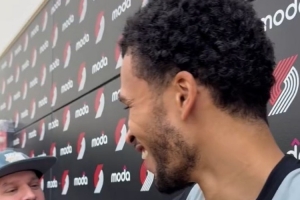 在卡马拉今天接受采访时,球队主帅比卢普斯还特地跑过来打趣:“展示一下你那八千万美元的微笑,别藏着了!”