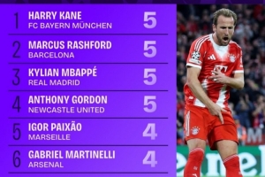 体育资讯10月23日讯 本赛季欧冠联赛阶段已战罢3轮,Squawka统计了到目前为止的参与进球榜,拜仁前锋凯恩、巴萨攻击手拉什福德、皇马的姆巴佩以及纽卡边锋安东尼-戈登均参与5球。