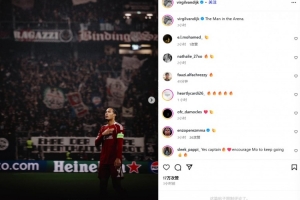 范戴克在赛后通过社媒晒出自己赛后向球迷们致意的谢场照,并配文:“球场中的男人。”