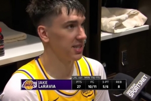 体育资讯10月30日讯 湖人客场116-115绝杀森林狼,赛后,湖人球员拉拉维亚接受媒体采访。
