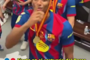 巴萨更衣室狂欢:亚马尔舞蹈走红,意外拍到什琴斯尼吸烟
